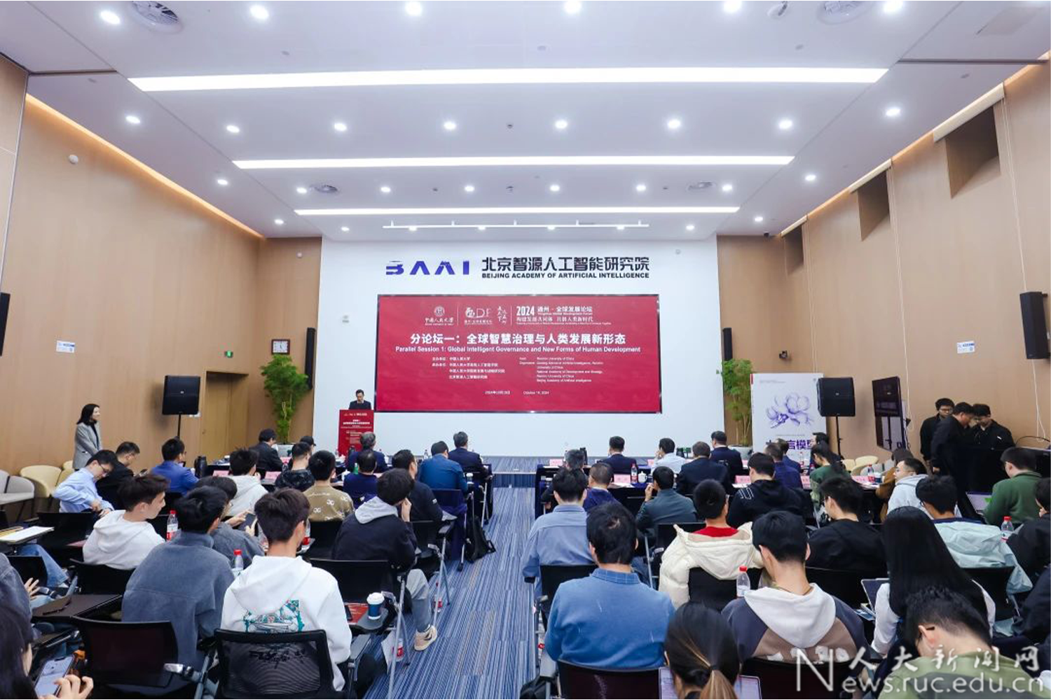 分论坛一围绕“全球智慧治理与人类发展新形态”主题展开,中国人民大学校长林尚立、常务副校长朱信凯出席并致辞。国际欧亚科学院院士、住房和城乡建设部原副部长仇保兴,斯坦福大学终身教授、冯·诺依曼理论奖首位华人获奖者叶荫宇,清华大学苏世民书院院长、人工智能国际治理研究院院长薛澜等国内外知名嘉宾学者一同围绕AI技术如何赋能全球智慧治理、促进人类发展新形态,以及从2024年诺贝尔奖看AI与科研新范式等议题开展交流。与会嘉宾共同见证中国人民大学与北京智源人工智能研究院加入“北京国际AI人才创新联盟”,论坛发布中国人民大学自主研发的Yulan大模型系列成果和教材《大语言模型》。