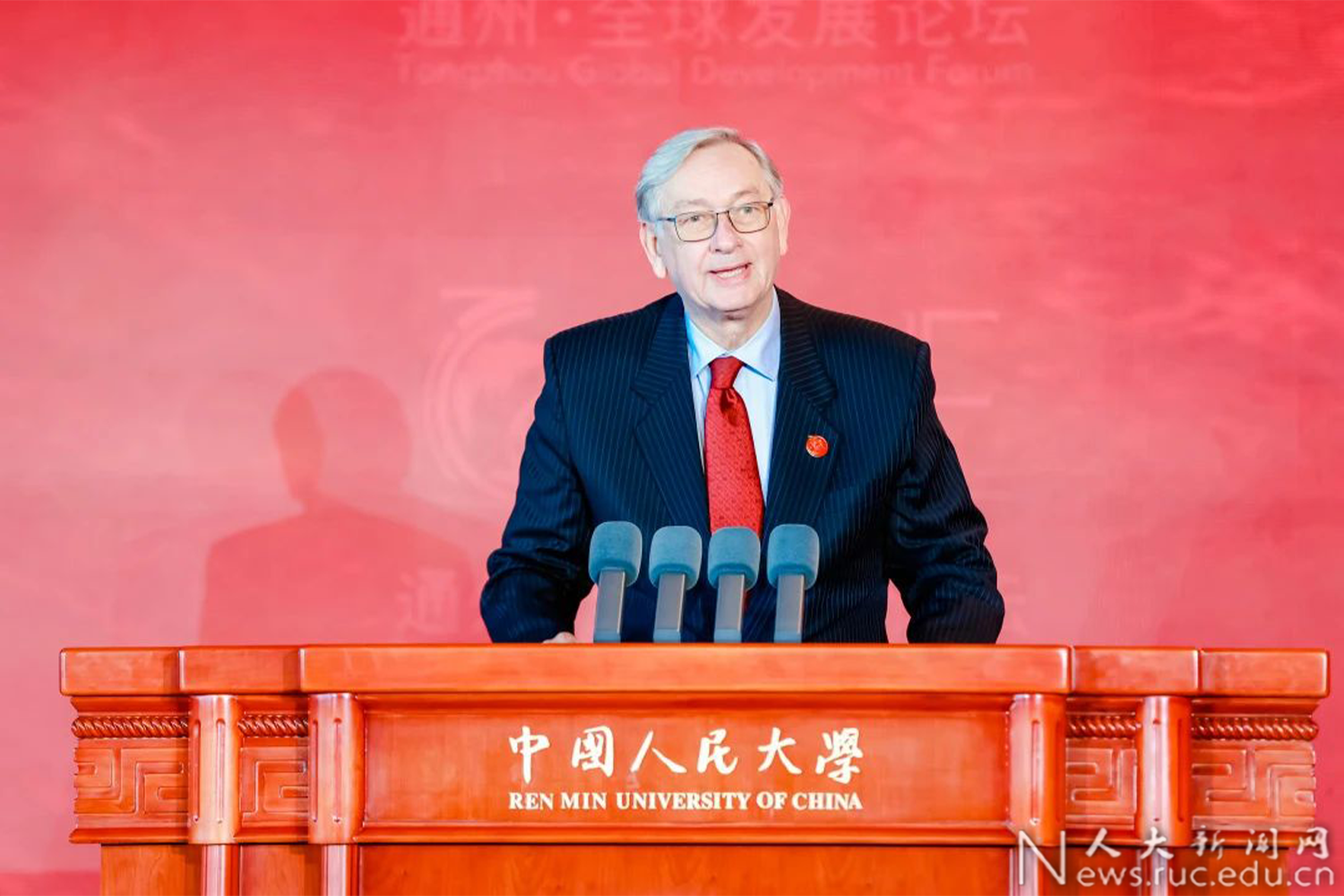 张东刚表示,本届通州·全球发展论坛是中国高校首次围绕联合国2030年可持续发展议程规划设计的国际论坛,是首个贯彻落实习近平主席提出的“全球发展倡议”,推动构建人类命运共同体,弘扬全人类共同价值,以“全球发展”为主题的、机制化的国际论坛。我们在沟通对话中达成新共识,在相互尊重中谋划新发展,在互学互鉴中谱写新篇章,为应对全球性发展挑战开展了战略对话、凝聚了发展力量、构建了新的对话平台,为以推动全球发展共识的确定性应对当今世界发展的不确定性,携手建设更加美好的新世界开辟了新的合作模式。作为中国共产党创办的第一所新型正规大学,中国人民大学将坚定不移落实习近平主席提出的“三大全球倡议”,始终坚持胸怀天下,始终以全球眼光关注世界和平与发展、关怀人类前途命运,发挥哲学社会科学在融通中外文化、增进文明交流中的独特作用,通过举办通州·全球发展论坛等一系列高端对话活动,构筑世界各国政界、学界、商界共商共议全球发展战略问题的高端对话平台,持续凝聚全球发展共识、激发全球发展信心、汇聚全球发展力量,推动强国建设、民族复兴伟业与构建人类命运共同体同向共进、双向奔赴。