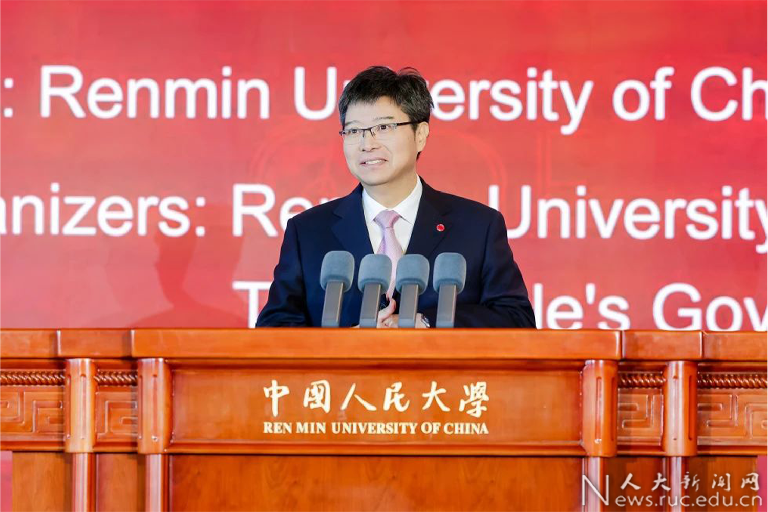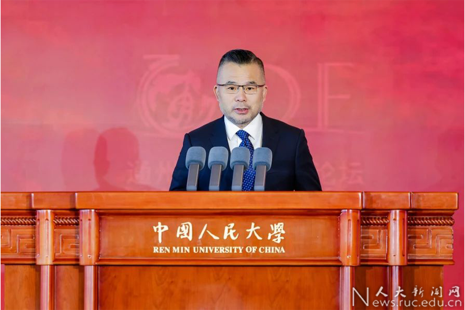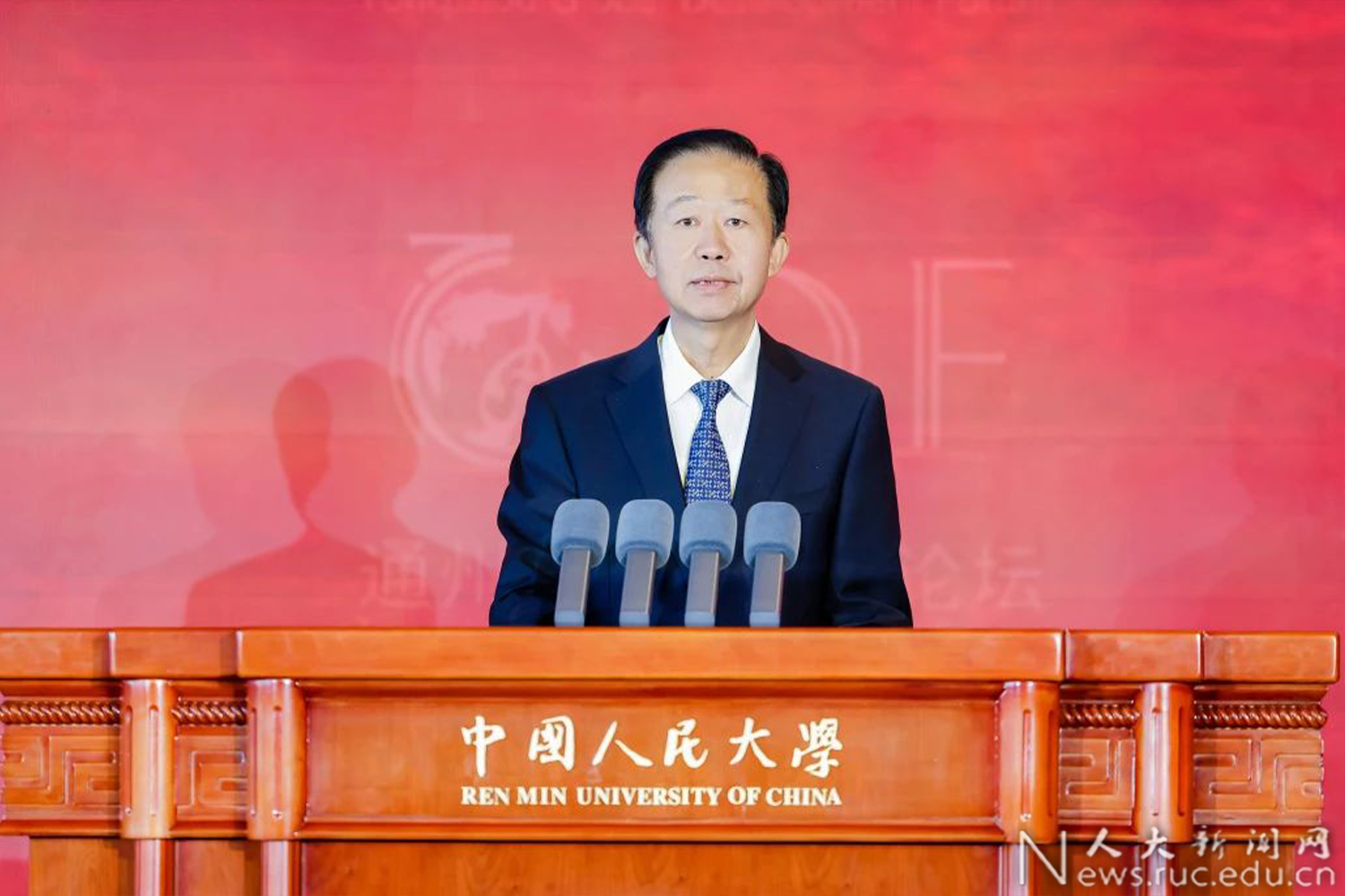 论坛开幕式上,肖捷、陈洲、穆鹏先后致辞。中国人民大学校长林尚立主持。