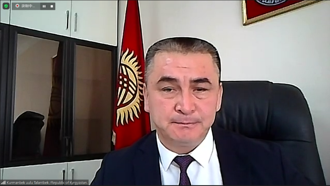 本次讲座由吉尔吉斯国立大学副校长古尔曼别克·塔兰拜克(Kurmanbek uulu Talanbek)教授和吉尔吉斯国立大学法学研究所副所长伊曼贝尔齐耶夫·丘佩科维奇(Imanberdiev Dosaaly Choyubekovich)主讲。中国人民大学法学院副院长、教授,中国人民大学欧亚研究院研究员张龑主持主旨演讲环节。