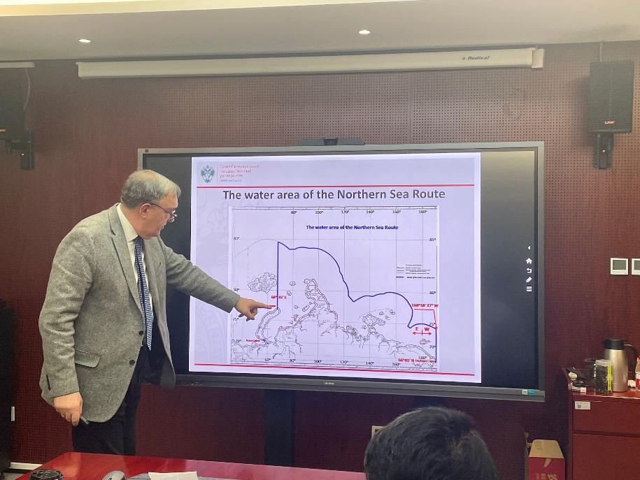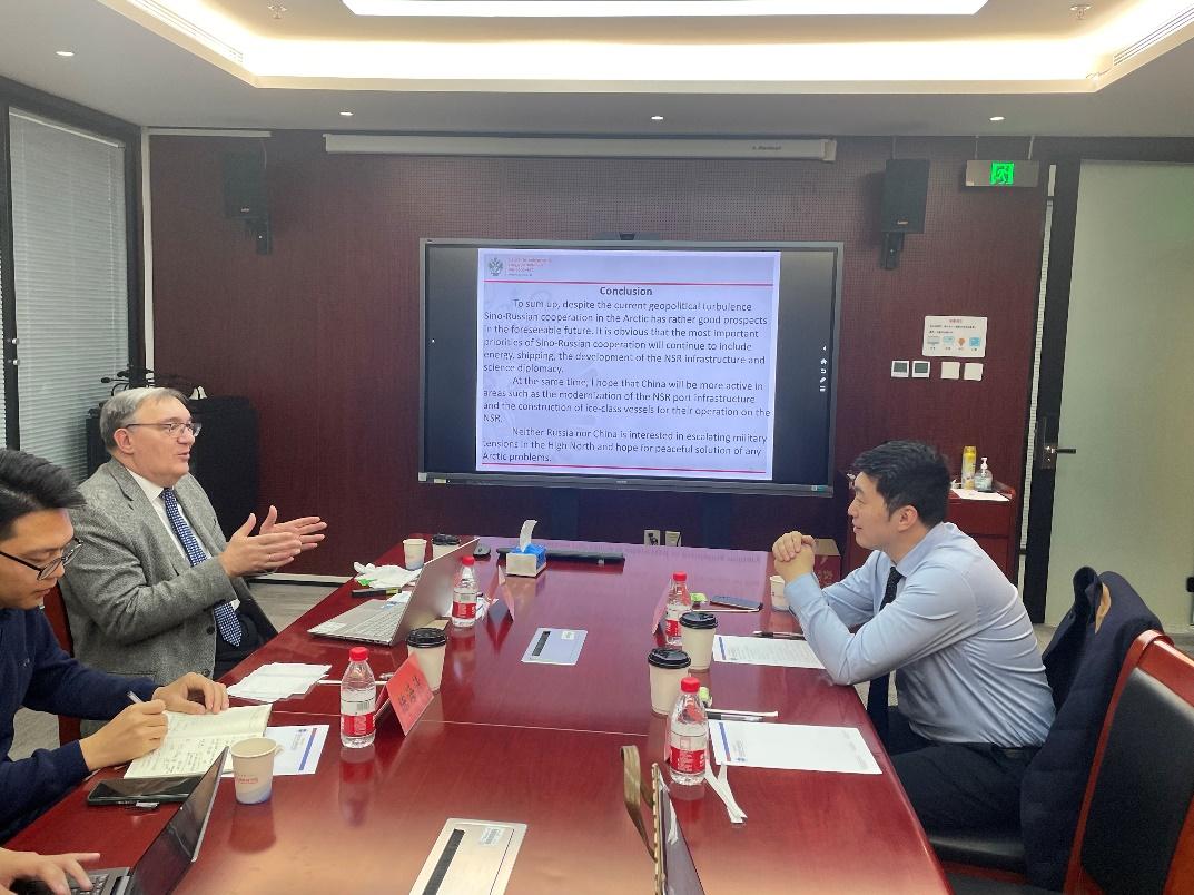 谢尔古宁教授指出,北极地区对中俄两国而言均具有重要意义。俄罗斯40%领土位于北极圈内,对其具有直接的地缘政治利益诉求;中国也因北极地域的资源价值、航线价值、科研价值等高度重视北极地域。谢尔古宁教授提出,中俄两国的北极合作可以在多个领域内展开。例如,两国可以在在现存的LNG项目之上推进北极地区的能源开发与绿色能源合作,造船、采矿、无限通讯、交通基础设施建设也均为中俄北极合作的潜在领域。不过,合作中风险与机遇并存。谢尔古宁教授基于俄罗斯对保护北极生态环境与北极居民的倡议,提出中俄也可以经由船舶建造、船员培训中的技术交流等渠道,在北极航行中更积极地遵守《极地规则》,推进北极地区的可持续发展。最后,谢尔古宁教授指出,中俄北极合作具有良好的发展前景,他希望中国能与俄罗斯在北海航线建设、港口基础设施建设等方面展开更加积极、深入的合作。