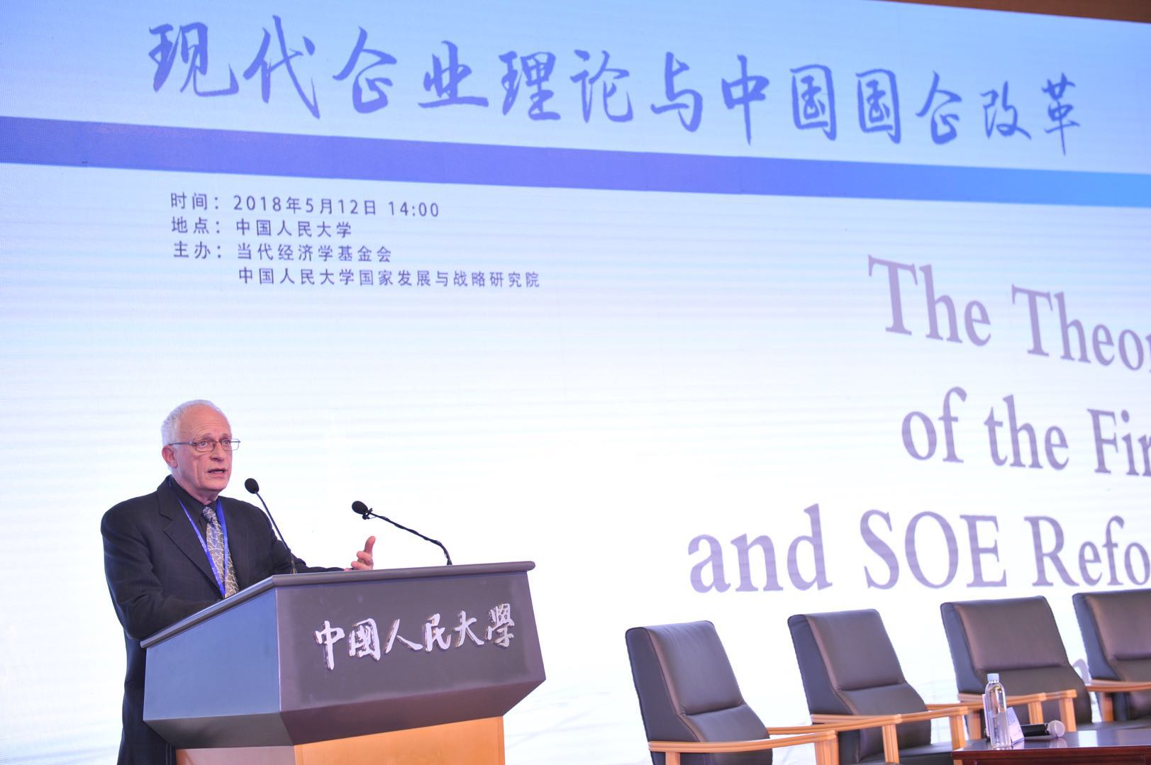 中国人民大学副校长刘元春在致辞中对哈特教授和各位嘉宾的到来表示欢迎。他表示,在中国正迎来改革开放第三轮国企改革浪潮之际,讨论国企改革和现代企业理论正逢其时。十八届三中全会上,中国提出了全面改革的一揽子顶层设计方案,其中国有企业改革是最为基础,也是最重要的改革内容之一。当前,中国特色现代企业理论还没有真正得以建立,中国国企改革需要战略性思想和理论性思想的支撑。刘元春指出,新时代中国要建立具有全球竞争力、世界一流的企业,需要真正全面改革目前的国有企业体系,还必须坚持社会主义导向,吸收现代社会科学的最新发展成果,同时发扬传统智慧,从而使国有企业适应新时代的竞争。中国人民大学国家发展与战略研究院作为首批国家高端智库建设试点单位,组织今天这样的高端研讨会,搭建国际交流的平台和渠道,也是我们的职责和担当。