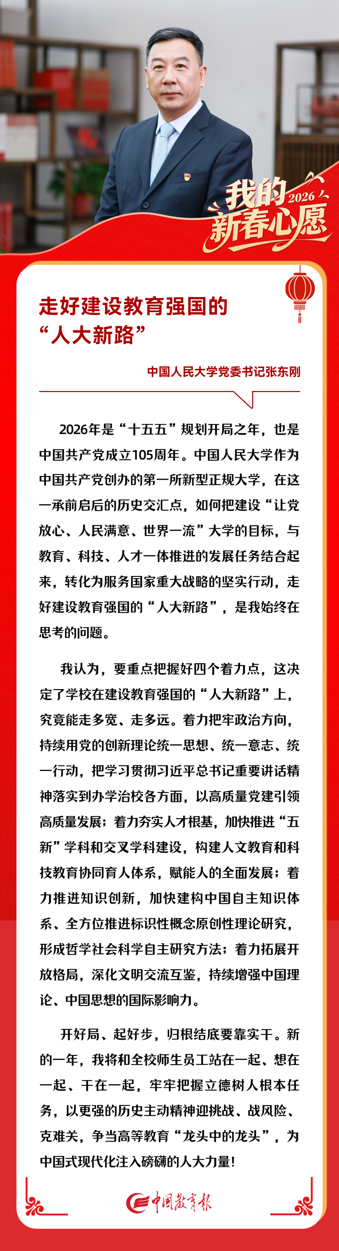 [中国教育报] 我的新春心愿|中国人民大学党委书记张东刚:走好建设教育强国的“人大新路”